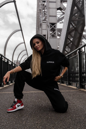 Komfort trifft auf die Straße! Probieren Sie es selbst aus und sehen Sie, warum unsere SUPERIOR-Jogginghosen immer ausverkauft sind! Erwischen Sie mich beim Faulenzen, auf Flügen oder beim Treffen mit ein paar Freundinnen.