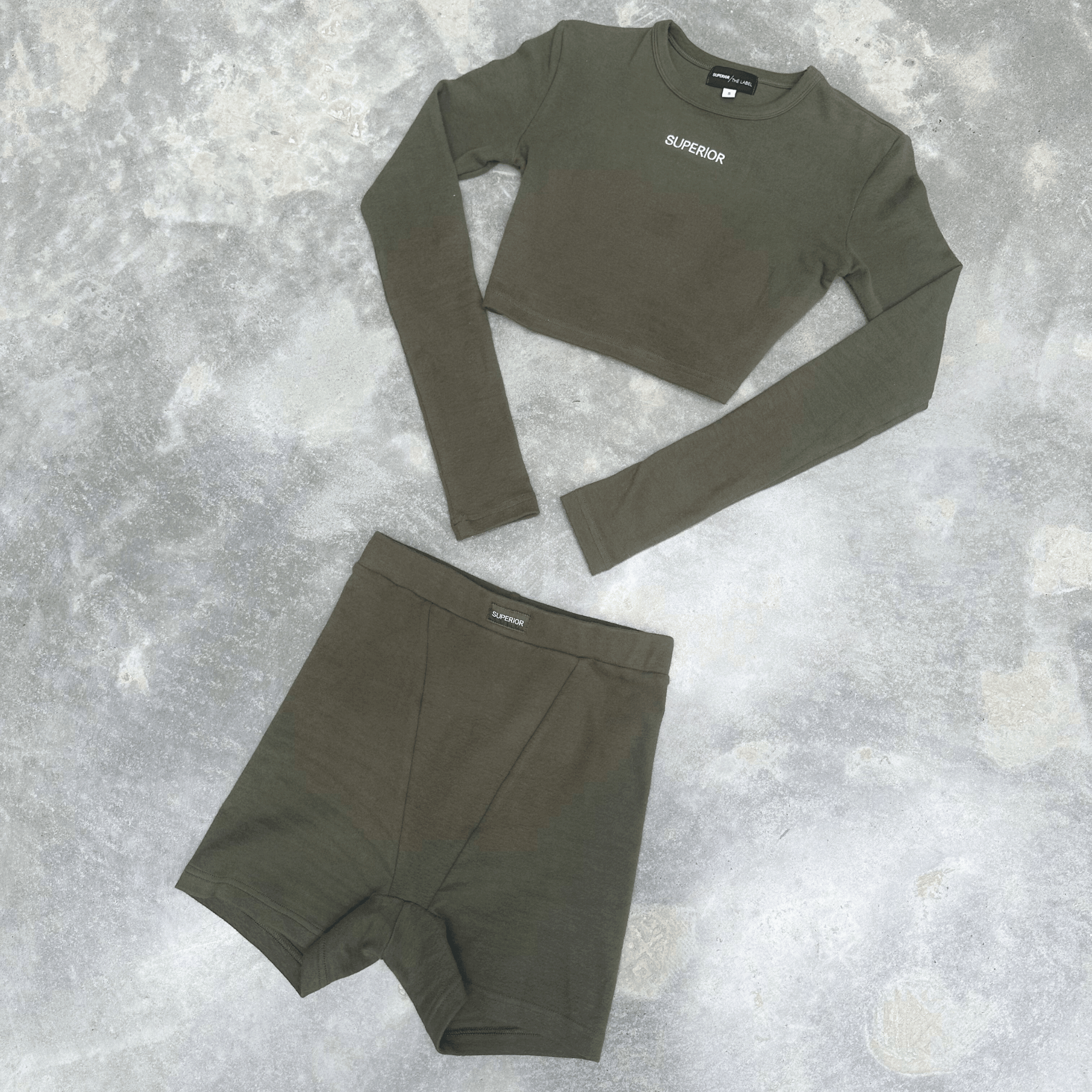 Comfort that still commands attention. The Superior Khaki High Waisted Shorts redefine loungewear with a sleek, sculpt-fit silhouette and soft-touch fabric that hugs without restriction. Designed to pair with the matching crop top, this set delivers street-luxe energy in its purest form.